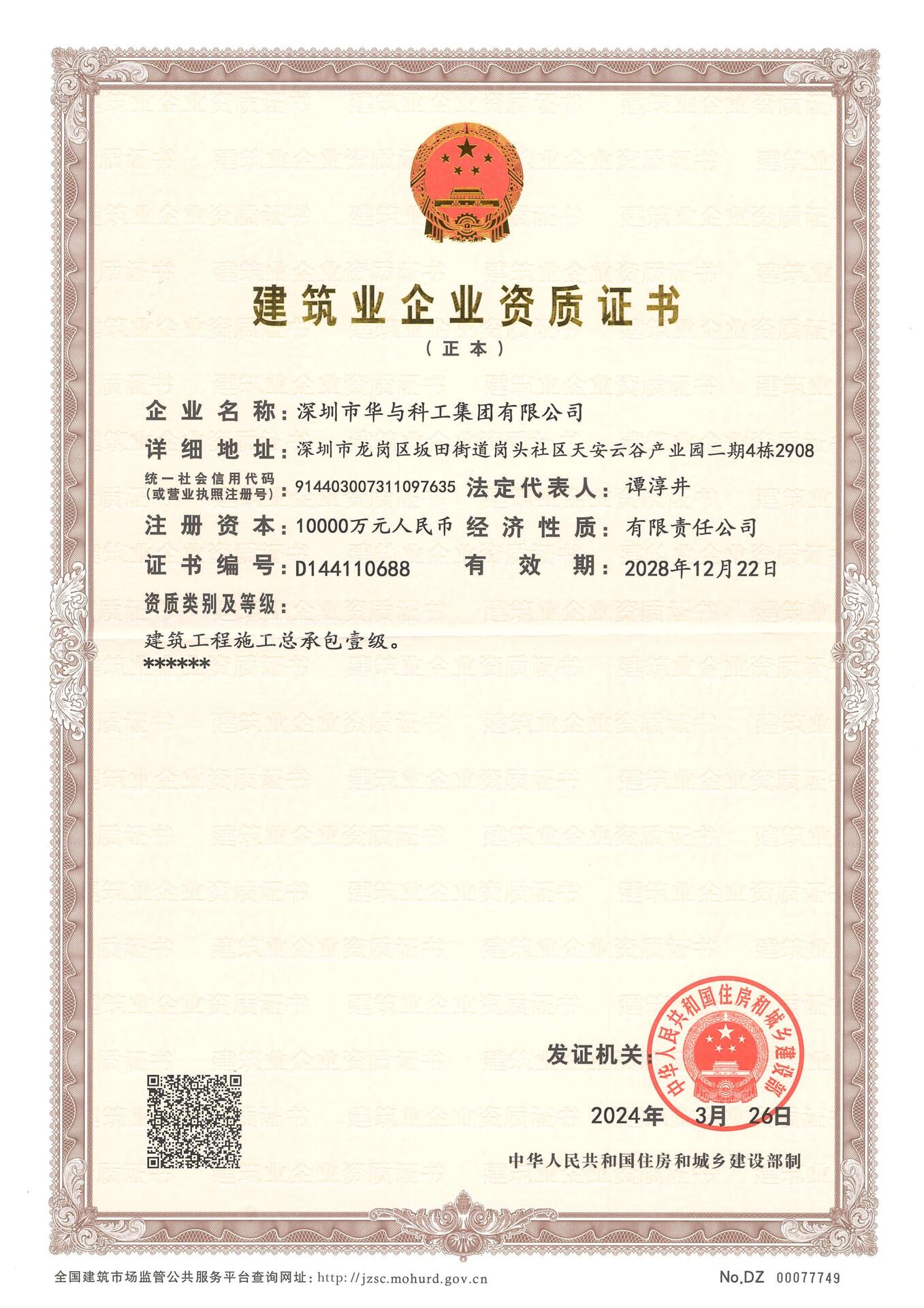 建筑机电安装工程专业承包一级、建筑装修装饰工程专业承包一级、市政公用工程施工总承包二级
