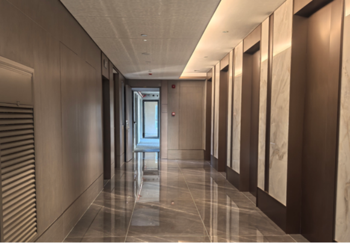 本项目位于深圳市坂田街道,北面为坂李大道,南面为天安路,东面为极创公园,西面为冲之大道,设计为5、6栋超高层住宅塔楼公区装修工程。