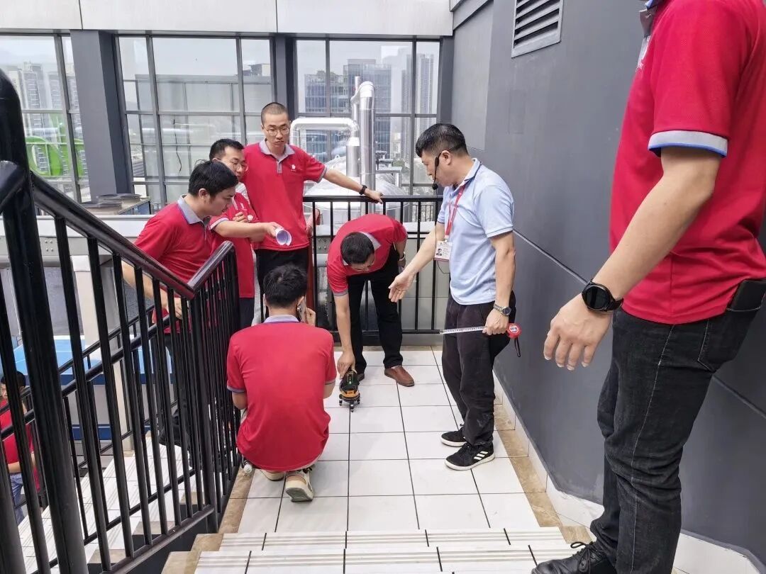 此次观摩依照不同人群划分不同观摩路线,在现场讲解人员带领下,对屋面、绿化、支架支墩、水电井等进行了参观学习。