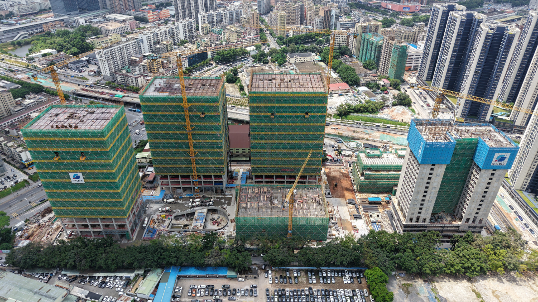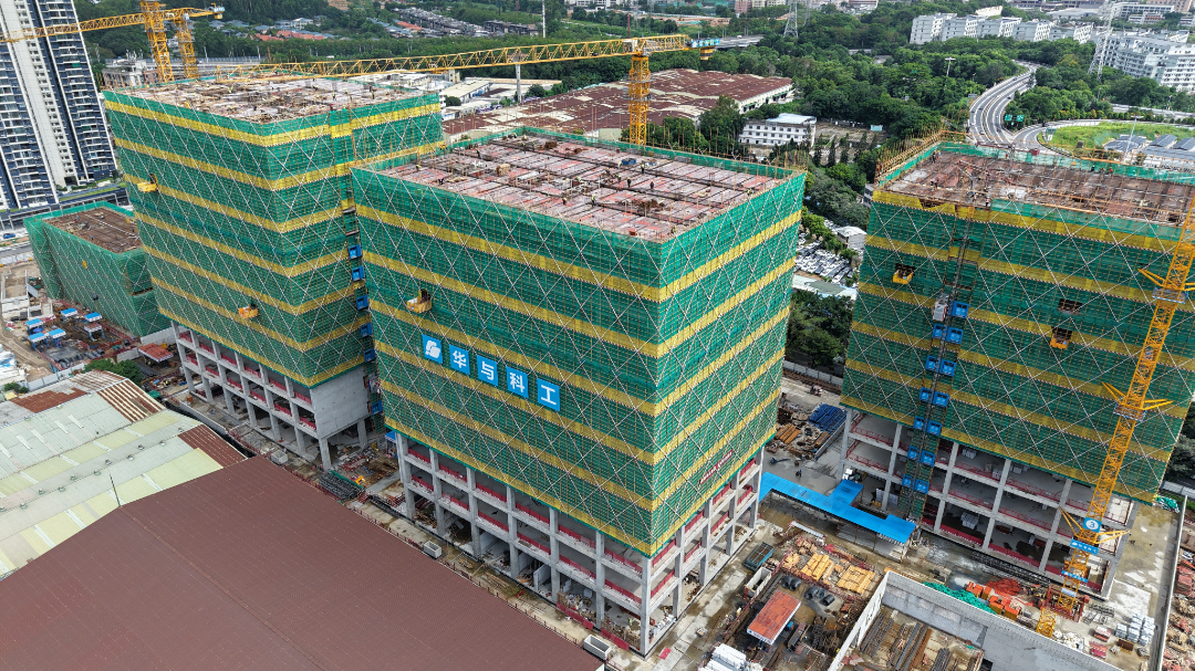 项目概述:地下3层,地上6栋: 1栋为23层宿舍,高91m,2栋为7层厂房,高43m,3、4、5栋为19层厂房,高97m,6栋为4层食堂,高22m。