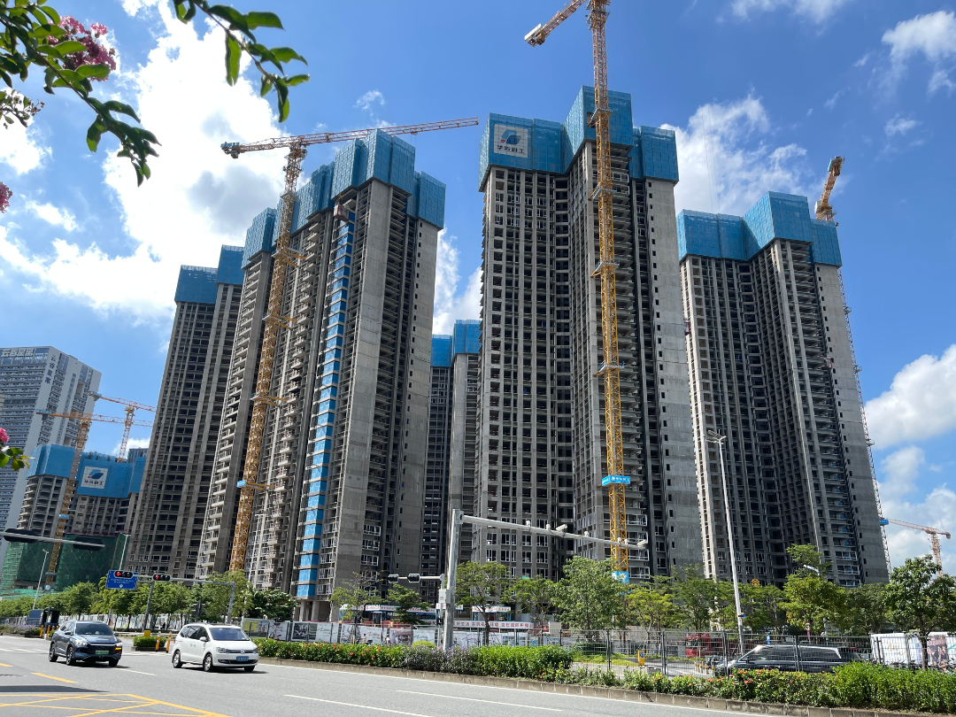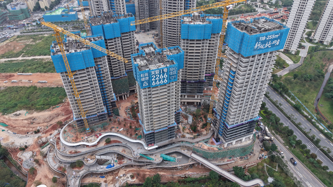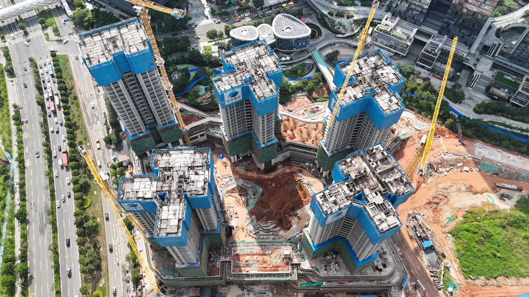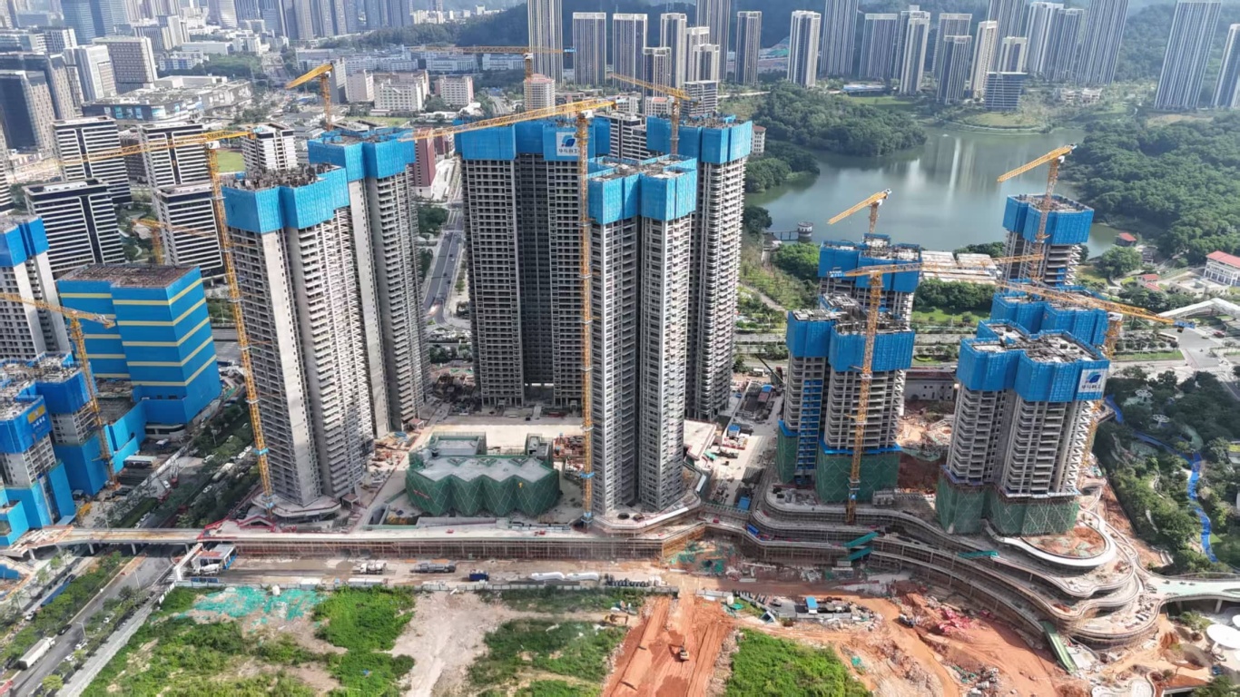 2-01地块24万平方米,2024.10.15开工,包括5栋超高层住宅塔楼,高51层,167.7m,3层商业裙房,地下4层。